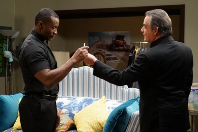Adrian meets with his friend, Rick Dresden, who knows that Tony's real name is Amir Hassan. He also reveals that Tony has gone by half a dozen different aliases and his usual racket is to lure wealthy and middle-aged married women into an affair, and then blackmail them by threatening to tell their husbands. Adrian thanks Rick and he realizes he already knows Tony is having an affair with Evelyn so he needs to discover how he will blackmail Evelyn. Later, Adrian and Rick meet Mrs. Parker, a woman lured by Tony. She reveals to them Tony was her chef, and they began an affair. Finally, Tony ended up soaking Mrs. Parker for $80,000. Then, Mrs. Parker asks Adrian to proceed carefully, when he tells the whole story to Evelyn. She says women need to feel beautiful and loved at a certain age, and when they discover they have been fooled they are broke in many ways. Later, Adrian heads home and reveals to Tony that he knows about all of his aliases and different scams. Then, Adrian asks what is Tony's plan B. Tony reveals that he is going to file a lawsuit against Evelyn for abusing their employee relationship. Tony says he has a recording, but Adrian shows him the recording he found in his clock and he puts it in his drink. Adrian offers him a check for $100,000 to leave Evelyn alone. He doesn't want Evelyn to ever know that Tony was scamming her because he knows it will crush her. However, Adrian tells him he agrees to give him the money but there is one condition. Tony is surprised by this. Later, Adrian listens Tony saying to Evelyn he leaves her, and he seems pleased. That night, Evelyn catches Adrian sitting in the living-room playing records from their wedding. He invites her to dance the tango with him. After their dance, Adrian kisses Evelyn with passion. ("You Can't Take It With You")