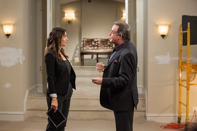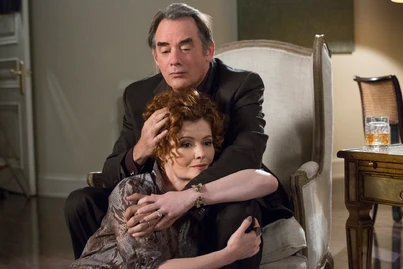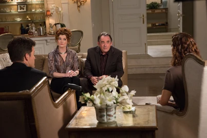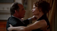 The Powells meet with their lawyers to discuss the dividing of their belongings, and argue over which they want to keep and for what reasons. It's when the news of Taylor Stappord's miscarriage comes that the couple embrace one another in sadness, and decide it best they go home. For the time being their divorce seems to have been put on hold, and together they plan for the Delatours' engagement party. However, when Philippe arrives to ask to borrow their jet to leave town privately with Genevieve, the couple grow weary of his intentions. Evelyn also notices that he lied during their conversation; he pointed out dahlias being used at past parties, but they were only used at one - one which he was not invited to... the party at which Flora was killed. The Powells instantly piece together that he is the one to have in fact killed their maid, and so they team up to plan revenge. At the engagement party, Adrian tells Philippe to meet him alone when he has time, and sure enough he does, but not before Marisol fails to get a confession out of him. Adrian gives his "friend" a drink, before revealing that his gift comes in the form of advice, that being to create a plausible reason for a sudden death... such as suicide. It's then that Evelyn enters to secure the doors, and Philippe realizes something happening to his body. It turns out Adrian has given him an undetectable poison; he confronts him for killing Flora and throws him over the balcony and into his pool to his death. The Powells tell the police that he committed suicide for being unable to live with himself any longer, and the devious maids back them up. ("Totally Clean")