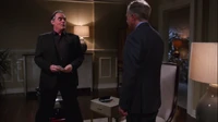Evelyn and James are returning from yet another charity function when the former notices Adrian's PI, Rick Dresden, spying on them. She suggests that James pretend to propose, so as to hurt her ex, but he refuses because it isn't the right thing to do, which she finds boring. Dresden goes on to tell Adrian that he found legit nothing on the reverend in terms of dirt, having only been able to find good things in spite of his rather thorough search. In spite of this, Evelyn has grown disenchanted with the reverend. Gail, meanwhile, has heard word that Adrian is into bondage, and so she ambushes him with a pair of curtain ties and Evelyn ends up catching the two of them together while Adrian has his pants down, despite him wanting no part in sexual activity with Gail Fleming and claiming and the very idea of it terrifies him. He approaches Evelyn following this encounter in an attempt to explain himself but she acts as though she doesn't care, even though it's glaringly obvious that she's unhappy. Adrian interprets this as jealousy and realizes that he's been going about everything all wrong - he has to make Evelyn jealous if he is to win her back. He claims to Carmen that things are about to get even crazier than they've already been, while Evelyn goes on a date with James and complains about her husband. He takes this to mean that, in defiance of what she told him when they first started dating, she does not see her marriage as being over, and he breaks up with her because of this. At the same time, Adrian goes to Gail and says that the reason she "terrifies" him is because he's so deeply in love with her. Gail is ecstatic and captivated by the lie. ("Much Ado About Buffing")
