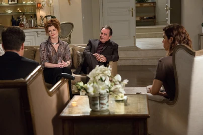Genevieve and Adrian are seen in the latter's home, drinking some tea. Adrian admits he was surprised by Genevieve's phone call, but the woman replies it is been ages and she feels awful about that, because she does enjoy him and Evelyn. However, Adrian is not a fool and asks her if there is not another reason for her visit, saying he detected a hint of desperation in her voice when she called. Genevieve admits it is the truth and tells to Adrian she needs something. The latter says she came to the right place, because he never could say no to a pretty face. Adrian smiles at her, and asks what she needs. Genevieve tells him she needs a kidney. Adrian is surprised by this. Genevieve explains she has a renal failure, so she decided to ask people to get tested in the hopes someone will be a match and give her their kidney. Adrian does not look convinced by her explanation. Genevieve asks his answer and Adrian seems embarrassed. He tells her it would be one thing if she was going to ask to use his jet or his yacht, but they are talking about a major organ. He adds he has grown quite fond of his. Genevieve replies that she knows it is a big favor and that is why she is only asking her closest friends, but Adrian replies they are not that close. The woman reminds him of the Bermans' Christmas party, where they talked in the corner the whole night, adding that Adrian said they had an amazing connection. However, Adrian admits he was hitting on her because he is really skeevy. Genevieve tells him it was a long time ago so she is willing to forgive him, but Adrian replies it seems misguided. A desperate Genevieve says she has no choice because her condition is getting worse, so she asks him one more time to help her. Adrian refuses, but adds if there was anything else he could do for her, he will do it. Genevieve is really disappointed, but says she would like to get away for the weekend, so she asks Adrian if he'd loan her his yacht. Adrian replies: "Oh, sweetheart. No." Genevieve is indignant. ("Proof")