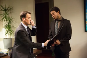 Spence is taken down to the police station and his sponsor, Ben, tries to visit him. However, Detective Shaw tells the man that she cannot authorize that, and so Ben proceeds to drop a call to someone mysterious and tell them that he needs them to do him a favor. When we next see him, Shaw is allowing him into the interrogation room to interact with Spence, for apparently he has friends in high places. Ben brings Spence a cup of coffee which he says must be better than the swill the cops are serving him, and Spence thanks him, then drinking it. Ben makes clear that he doesn't believe Spence killed Peri and wants his friend to help him figure out who really did; Spence feels glad that his friend trusts him, and their long talk continues. Rosie later arrives at the station to tell Shaw that Spence has an alibi, trying to give her the contact details of the stripper Cinnamon, but Shaw rejects this as evidence on the grounds that the stripper could have been paid to say whatever Rosie wanted her to say, and also Spence already confessed. In fact, they're taking his statement right now. Back in the interrogation room, we see Spence admitting in front of a camera that he was the one who killed Peri, and Ben stands behind the camera and smiles, seeming to have manipulated this whole situation somehow.