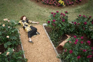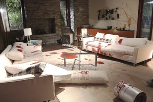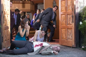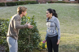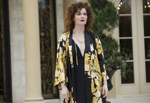After the party, Evelyn is shocked to learn that she had sex with another woman's erection, for Adrian was only able to get one when Alexandra stepped on his hand. He assures that he wasn't attracted to the woman, but rather, the pain, and he'd like to explore S&M with his wife. She refuses, disgusted, trying to force him to sleep on the couch, but instead he sneaks out to a sex club known as The Velvet Whip, so as to have a good time being dominated. Blanca, meanwhile, shows up at the Stappord House to move her stuff in, but she is shocked to discover that the living room is absolutely covered in blood. She demands to know what happened while Katy watches the crime scene creepily. The next morning, Evelyn once again finds something attacking her prize-winning roses: this time a dog. However, it's not the roses it's attacking, but rather, a chopped-off human leg that's been dumped on the Powells' lawn. After shooing the dog away, Evelyn discovers the leg and is so shocked that she faints. What on Earth could be going on in Beverly Hills?