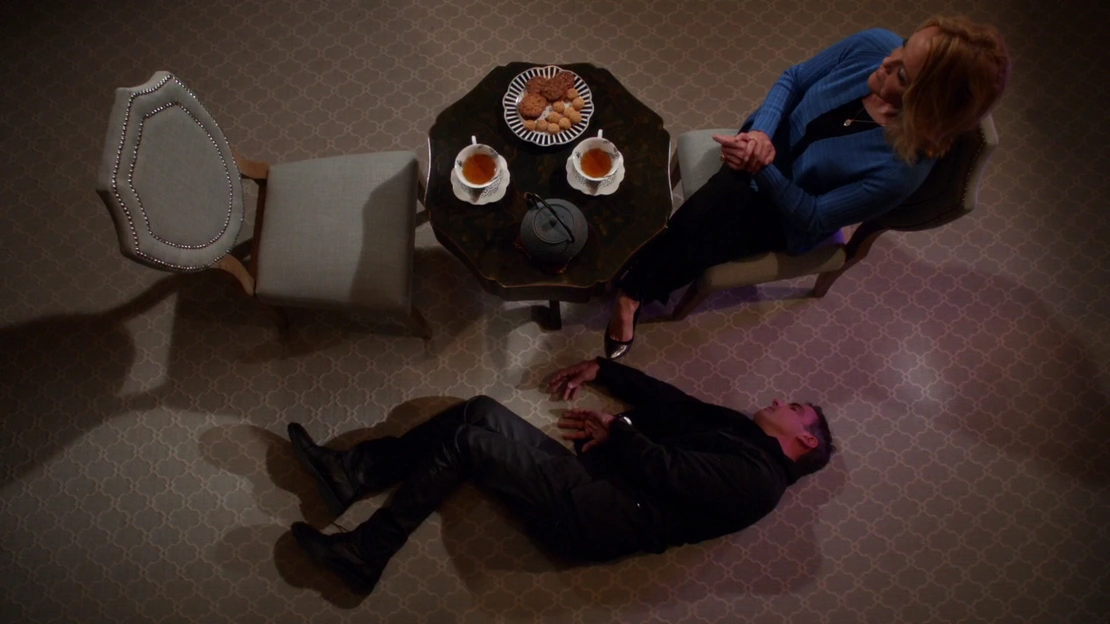 Spence is arrested for Peri's murder, and Ben tries to visit him. However, Detective Shaw tells the man that she cannot authorize that, and so Ben proceeds to drop a call to someone mysterious and tell them that he needs them to do him a favor. When we next see him, Shaw is allowing him into the interrogation room to interact with Spence, for apparently he has friends in high places. Ben brings Spence a cup of coffee which he says must be better than the swill the cops are serving him, and Spence thanks him, then drinking it. Ben makes clear that he doesn't believe Spence killed Peri and wants his friend to help him figure out who really did; Spence feels glad that his friend trusts him, and their long talk continues. Rosie later arrives at the station to tell Shaw that Spence has an alibi, but as it turns out, Spence is already confessing. Back in the interrogation room, Spence is seen admitting in front of a camera that he was the one who killed Peri, and Ben stands behind the camera and smiles, seeming to have manipulated this whole situation somehow. ("Another One Wipes the Dust")