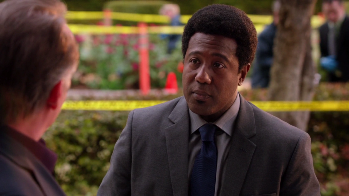 When finding a severed, human leg in her rose bushes one morning, Evelyn Powell falls unconscious, only to re-awaken when receiving mouth-to-mouth by her gardener, Juan. She calls the police immediately, and ambulances and detectives arrive. Detective Figueroa arrives to take notes, and when Adrian arrives home from his night out, Figueroa greets them both. Adrian states that it's nice to see him again, and Evelyn adds that it's been ages since there was a murder in their home. Figueroa reveals he has come for Adrian's alibi, stating that he needs to know where he was in order to rule him out of the crime. Not wanting to reveal where he really was, Adrian claims that he was at the chiropractor. Evelyn doesn't seem to believe this though, since it was 6AM, but Adrian states his back was in pain from being forced to sleep on the couch all night. Evelyn begins to see through this story though, especially when her husband is unable to give Figueroa a name for the chiropractor so he can confirm the alibi. Adrian ends up confessing he was at a sex club known as The Velvet Whip all night, and that there must have been a dozen witnesses. Realizing the awkwardness of this, Figueroa goes to leave so the Powells can have some privacy, but Evelyn tells the detective to stay, stating that there's about to be another murder, referring to her husband. The following day, Figueroa stops by Taylor's home and questions if she was home the night before. He tells her about the severed leg found at the Powells, and gives her his car so he may call if she hears of anything that may help the case. ("From Here to Eternity")