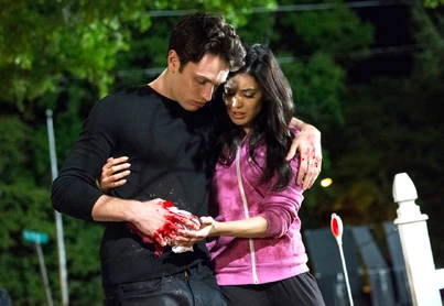 ![]() Ethan has been stabbed by Carmen. ("The Visit") |