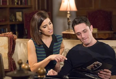 Valentina and Ethan are making out in a corner of Evelyn’s house. Genevieve barges into the house and informs Valentina she has to come to her house to see Remi. Valentina is shocked, she had no idea he was sick, or back from the Congo. Later, after her meeting with Remi, Valentina reveals to Genevieve that she is actually dating her poolboy Ethan. Genevieve is really upset about that. Finally, Valentina pays Zoila a visit and tells her she needs advice and “apologizes for being such a brat.” She reveals that she loves Remi, but he broke his heart. She cares about Ethan too, but at the end of the day he can hurt her too. Zoila informs her she is not telling her what to do, and she needs to make this decision herself. Later, Ethan pays Valentina a visit and tells her that if she wants he will step to the side so that she can get back together with Remi. She kisses him and it looks like she may have finally made her decision. Valentina pays Remi a visit and confesses to him that she is seeing Ethan, he understands and tells her that she “deserves the best.” That night, Ty heads outside to take the garbage outside after he gets home from jail and Ethan is waiting in the shadows for him. Ethan is one of the guys that robbed Alejandro’s house with Ty, and he threatens that if Ty tells anyone about Alejandro they will all tell the cops that Ty is the one that killed him, which is false. ("The Bad Seed")