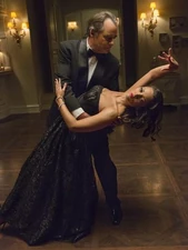Evelyn notices that Adrian is having an erotic dream and wakes him up just as he's fantasizing about himself and Flora dancing together. His wife would like for the two of them to make love, but Adrian refuses, and when Evelyn hears who he was dreaming about she states how glad she is that the whore maid is dead. She later meets with Genevieve Delatour, who's recently gotten back together with Philippe and would like to host their engagement party at the Powell mansion, for she feels it would be too awkward in her own home with there being so much tension. Evelyn reluctantly agrees to host the party before going on to ask about her friend's sex life, wondering if the passion is still there or if things are merely comfortable. Genevieve explains that Philippe is insatiable, making Evelyn very jealous, and soon she starts working on dividing her and her husband's assets. Adrian grows confused as to what she's doing, and she reveals that she plans on divorcing him because she has come to realize that there is someone out there who will treat her with the respect and the desire that she deserves, and she is going to find this wonderful person before her breasts get any lower. Adrian tries convincing her to stay by admitting that he does indeed love her, it's just that he doesn't want to touch her. Evelyn makes clear that him saying that just cost him half his net worth.