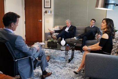 Marisol is invited to the Hamilton House Gala by Peter, as his date, but she can't go because she's meant to be managing her employees who are working the event. Peter suggests that she have her new assistant Evelyn manage the employees, which Marisol can't envision going down well considering how hard it's been to get Evelyn to do her job thus far. Still, she orders Evelyn to do what she asks, despite Evelyn not wanting to attend because she fears humiliation. At the gala, Peter and Marisol arrive where Peter introduces Marisol to some of his colleagues, including that of Hugh Metzger, a director; however, Peter then suggests that Marisol have a seat at the table occupied by all the mens' wives and dates. Marisol is disgusted by this, especially as the evening goes on and it seems like nothing they talk about is of that importance. Drunk, Marisol stands up and accuses the other women of being vapid and wasting their lives, unaware that one of these women, Candy, is in fact Peter's boss. Fortunately, Peter is able to smooth things over with her and proceeds to reveal that the reason he didn't want her involved in his discussion with the other men is because he didn't want to get her hopes up but that it doesn't matter now because Hugh Metzger wants to reopen production for her film and direct it himself, and he wants her to write the new script. ("A Time to Spill")