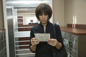 Later, Marisol meets with Carmen who wonders why she has yet to snoop around Opal's safe-deposit box, seeing as how she's got the key. However, Marisol reveals that that's not how safe-deposit boxes work; it requires ID, and the bank manager has a separate key, both of which it takes to open the box. She gets an idea though, taking out Opal's identification and asking Carmen how good she is at makeup, then requesting that she make her look like the woman in the picture. Marisol proceeds to the bank disguised as Opal and uses a very old teller to avoid being figured out as a fake. Eventually, she gets into the dead maid's safe-deposit box, discovering brown paper envelope inside. In the envelope, there is a scrap of cloth covered in blood, accompanied by a newspaper article about a tragedy in Beverly Hills. Shocked by what the article reveals, Marisol clasps her hand to her mouth and gasps, "Oh, my God!" She has finally uncovered the mystery and, like Nick warned would happen, she wishes that she hadn't.