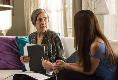 At Alejandro’s house, Carmen and Odessa are in for a shock. Alejandro’s family lawyer reveals to them that he left all of his money to charity and they have sold his house, Carmen and Odessa have four days to evacuate the premises. The next day, Carmen and Odessa help Renata plan Alejandro’s funeral. When Carmen learns that Beyonce and Kanye are coming to the services, she begins scheming. She proposes to Alejandro’s aunt that she sing at the funeral, obviously she has ulterior motives. Later, Odessa catches Carmen rehearsing a song for Alejandro’s funeral. She informs Carmen that this is a funeral, not an audition, and Alejandro’s love ones deserve to say good-bye to him with dignity. Carmen informs Odessa that Alejandro is dead, and she is not, and she “is going to be a star.” During the funeral, Renata is doing a speech in memory of her nephew. She cries, but Carmen asks her to leave the stage. Then, Father Tomas introduces Carmen and her song. She takes the stage but the reality sets in that Alejandro is really gone and she is unable to sing her song and breaks down in tears. Odessa comforts her. ("Dangerous Liaisons")